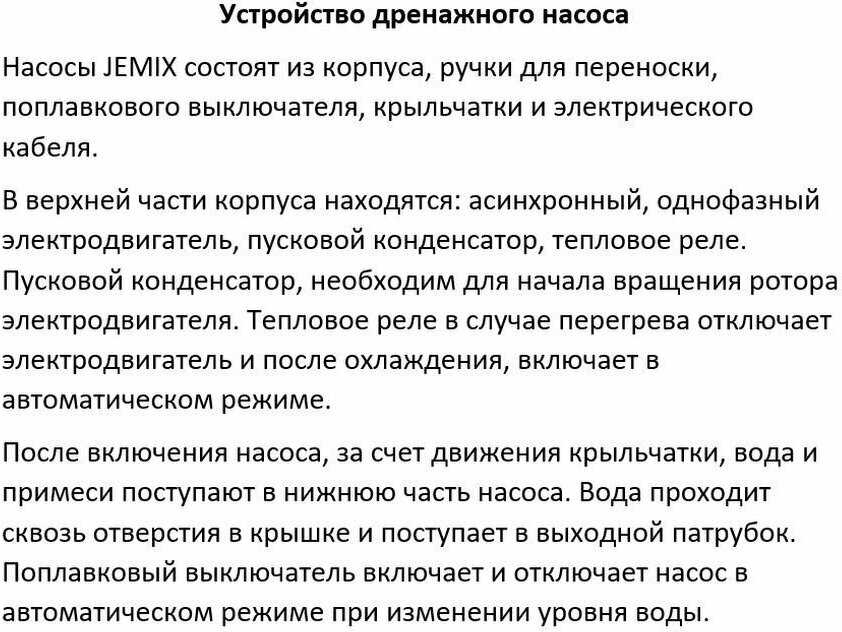 - + соотношения мощность-цена-тип насоса. С внешним поплавком часто выходит из строя - поменял уже два. такие долговечнее.