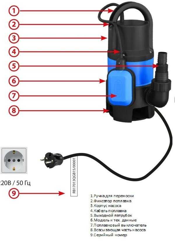 Функции : | защита от перегрева, защита от сухого хода, поплавковый выключатель |
