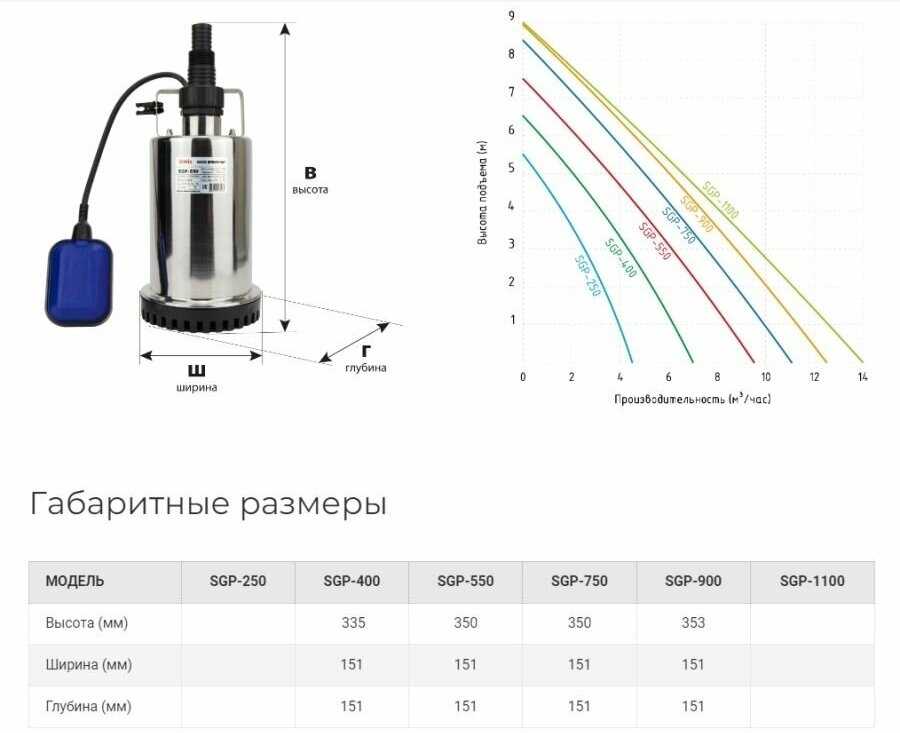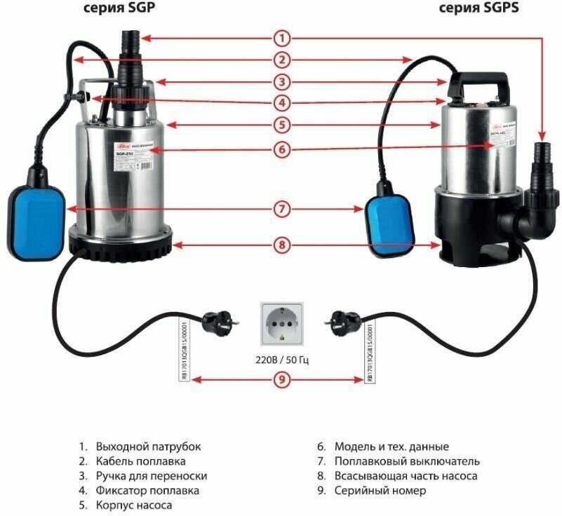 Функции : | защита от перегрева, защита от сухого хода, поплавковый выключатель |