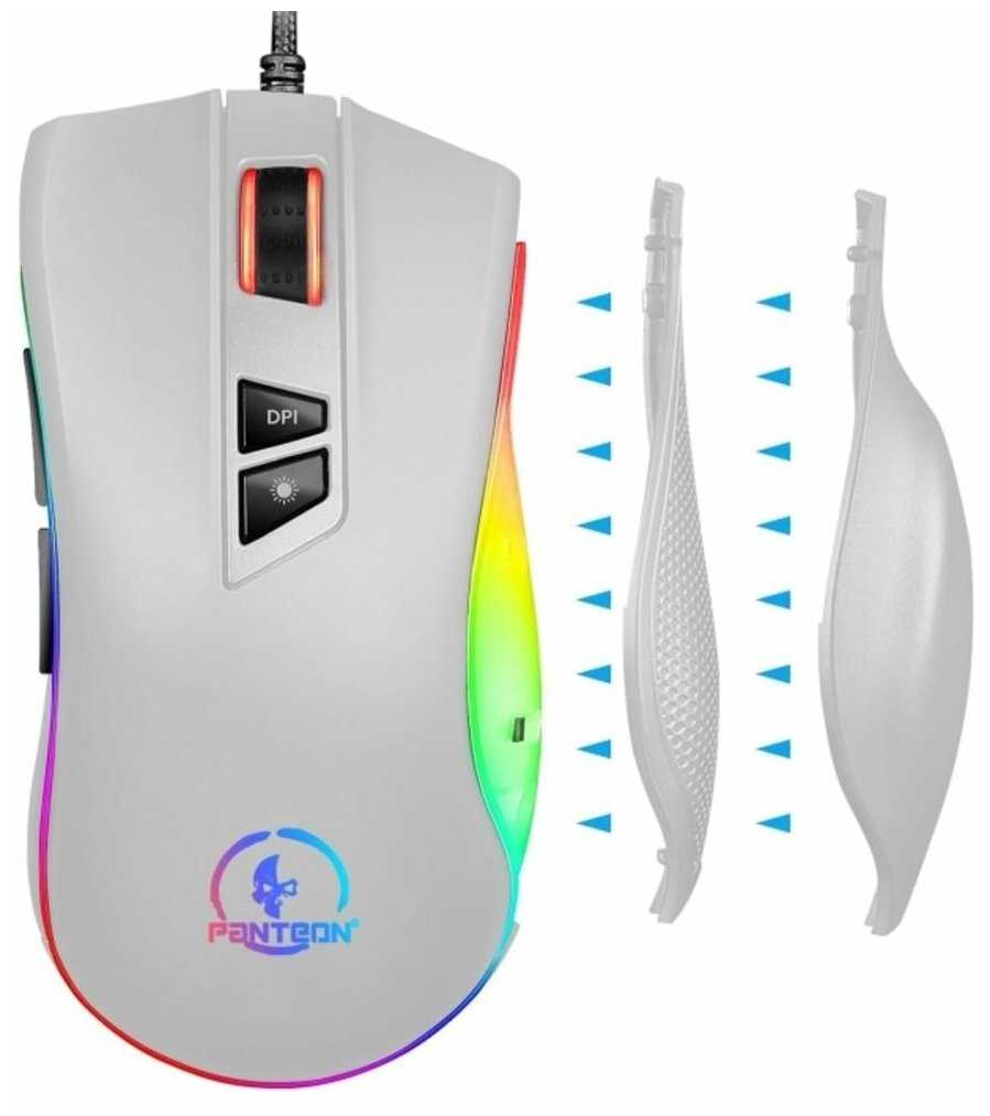 белая, красивая подсветка, дизайн, черный провод в оплетке, красивая коробка, удобная прога драйвер, наличие сменной панели боковой под руку.