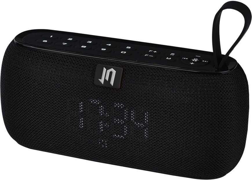 - + Отличная любительская колонка. Звук в меру громкий. Для помещения отлично. Можно вставить флэшку, телефон через провод, использовать радио или по блютусу подключиться. Когда зарядка заканчивается, то она женским голосом озвучивает «колонка разряжена» , вставляю шнур и снова наслаждаюсь музыкой.