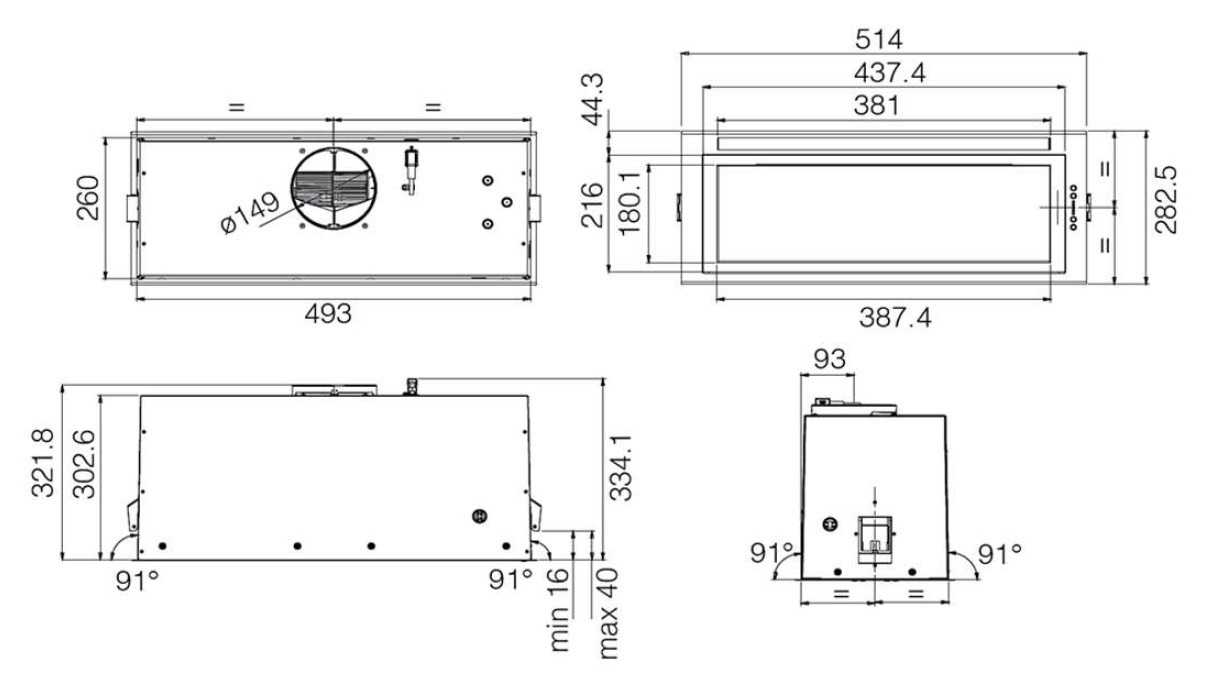 - Ширина встраивания: 49.3 см