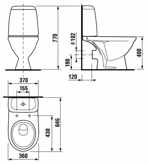 - + Один из немногих унитазов с высоким расположением выпускной трубы. от пола до оси трубы 190 мм.