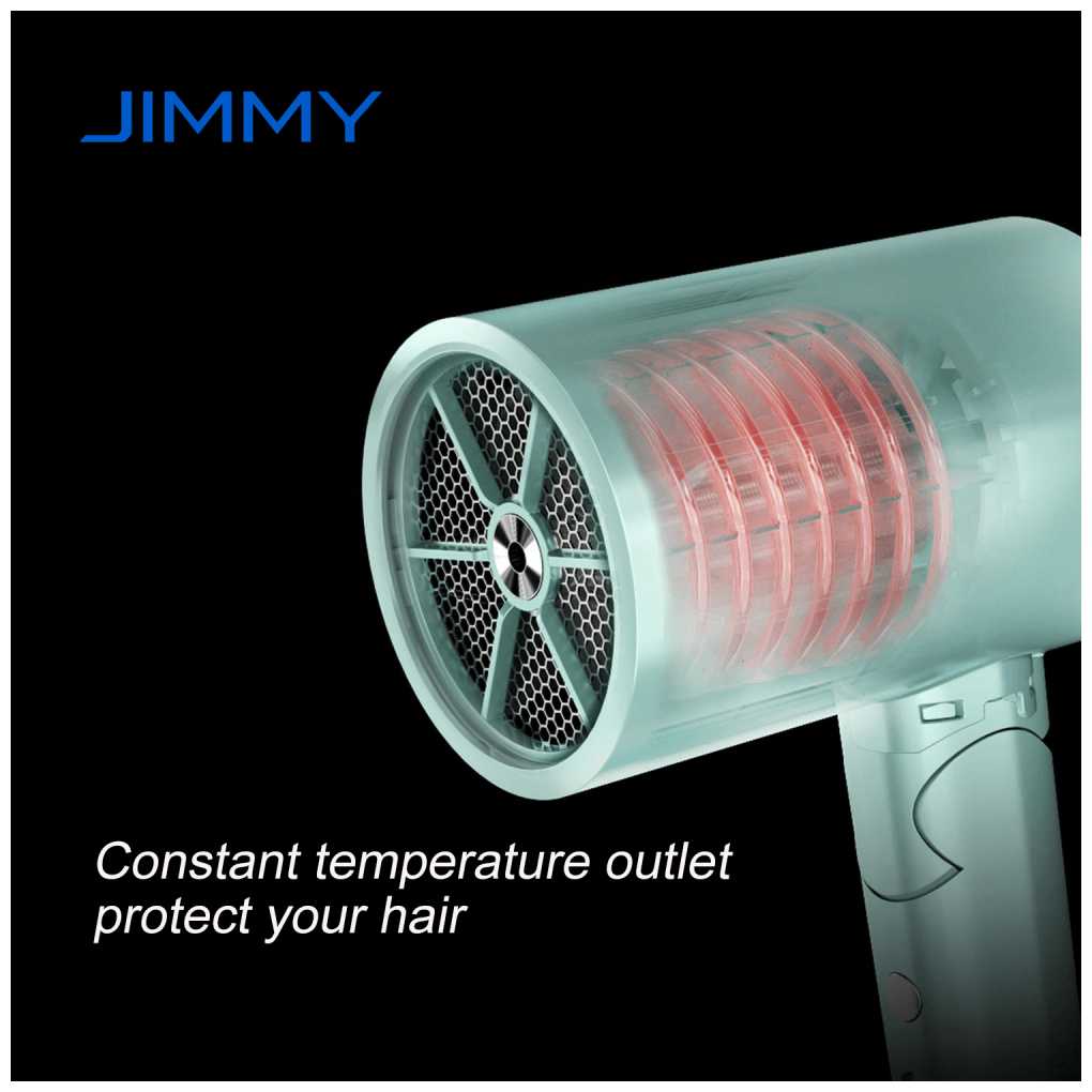 - + Фен Jimmy предназначен для быстрой сушки волос. Компактный складной фен с нано ионами и контролем температуры. Увлажнение волос с помощью ионов. Нано-ионы воды питают волосы и улучшают их качество.