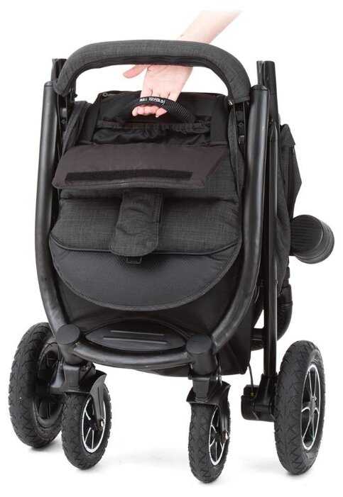 - складывается одной рукой 4 колеса вес коляски 11.85 кг нагрузка до 15 кг пятиточечные ремни безопасности капюшон из ткани резиновые колеса пружинная амортизация корзина для покупок