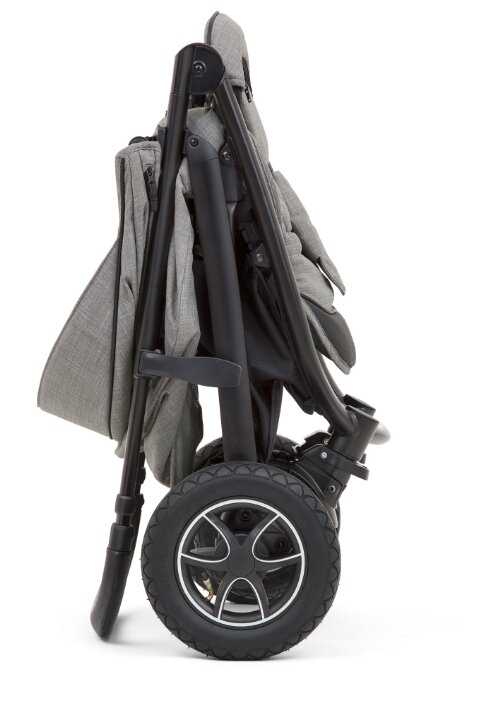 - + Очень удобная, за счет надувных колес, по асфальту бесшумная, малыш в ней хорошо спит и сидит, до этого в другой коляске отказывался сидеть, мы довольны