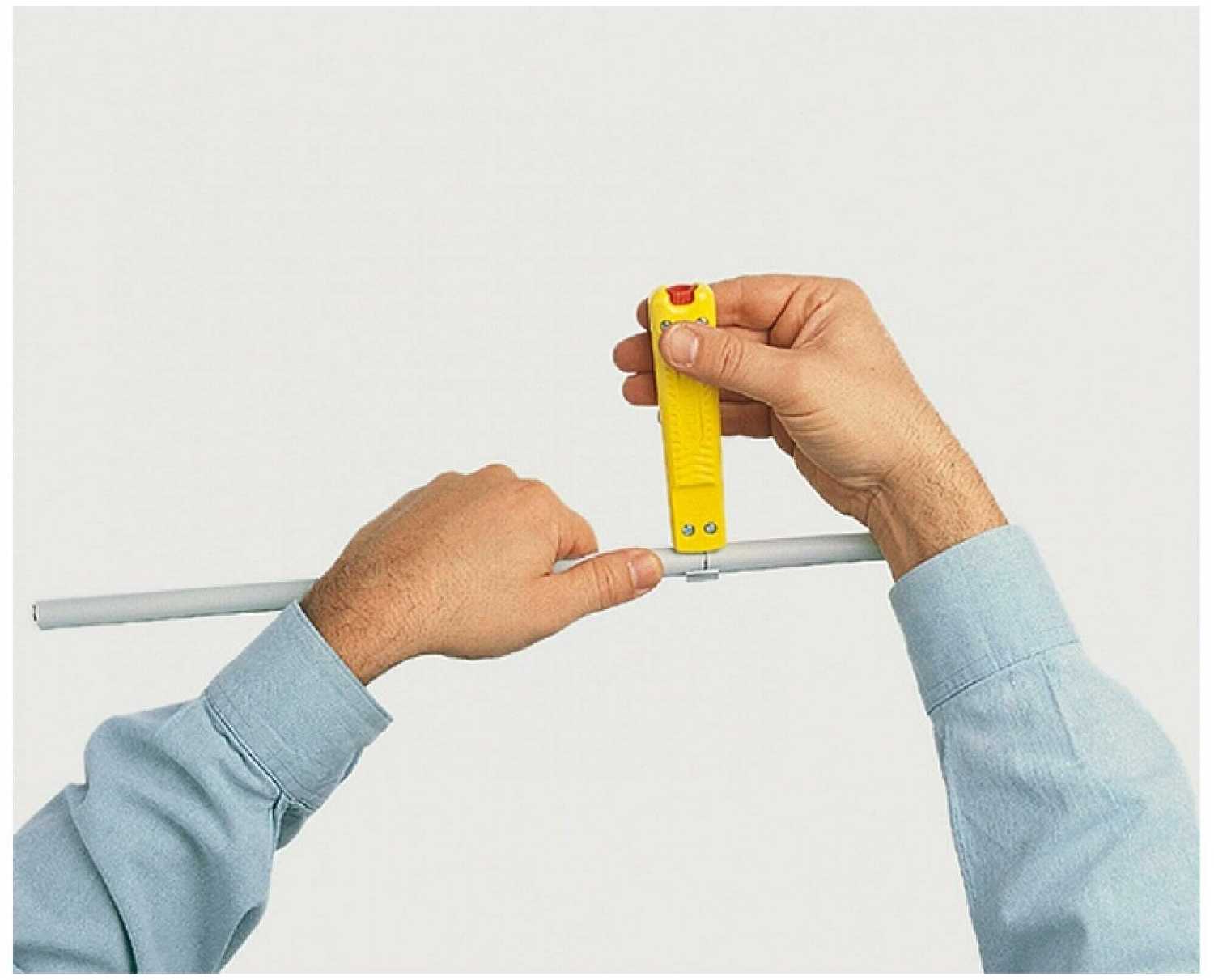 - + Отлично снимает оболочку с круглого кабеля,можно регулировать глубину реза