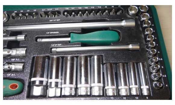 Отличный набор! Набор можно вытащить с ложементом и установить в выдвижной ящик инструментальной тележки))) Некоторые пишут что набор рассыпается нельзя его переносить... Так он НЕ рассчитан для багажника автомобиля, он для инструментальных тележек .