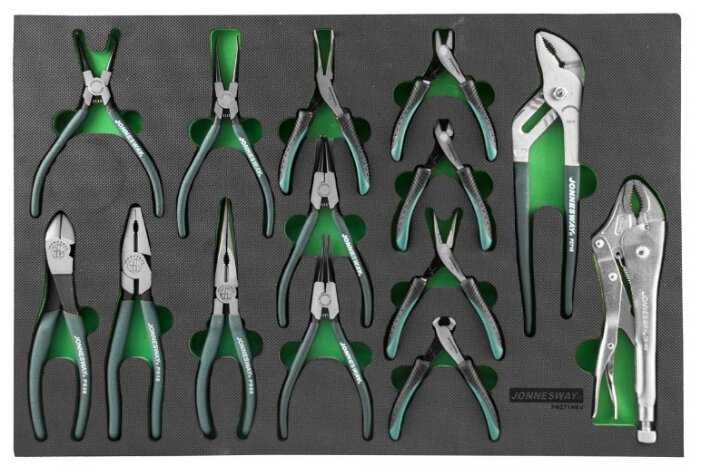 | Дополнительная информация : | Пассатижи 200 мм. Бокорезы 200 мм. Длинногубцы 200 мм. Длинногубцы мини изогнутые 45° 140 мм. Кусачки торцевые мини 110 мм. Бокорезы мини 115 мм. Пассатижи мини 120 мм. Длинногубцы мини 135 мм. Щипцы для стопорных колец 175 мм. 4 шт.: Сжим прямой, Сжим загнутый, Разжим прямой, Разжим загнутый. Захват трубный 250 мм. |