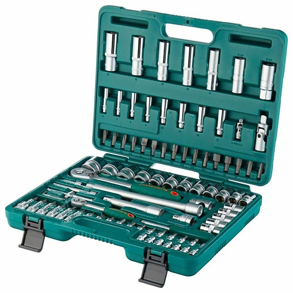 | Головки торцевые подробно : | 1/4": 4 4.5 5 5.5 6 7 8 9 10 11 12 13 14 мм, глубокие: 6 7 8 10 12 13 мм, TORX: E5 E6 E7 E8, удлинители: 50 150 мм, шарнир карданный 1/4" 1/2", вороток т-образный 130 мм, рукоятка трещоточная 60 зубцов, 1/2": 8 9 10 11 12 13 14 15 16 17 18 19 21 22 23 24 27 30 32 мм, глубокие: 13 14 17 19 22 мм, головки TORX: E10 E12 E14 E16 E18, свечные: 16 21 мм, удлинители: 125 250 мм, удлинитель с шаром 50 мм, шарнир карданный, вороток шарнирный 375 мм |
