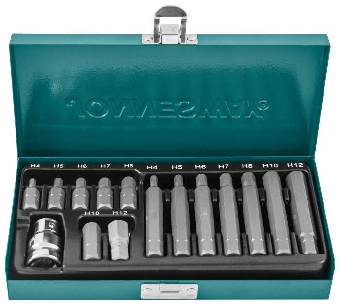 - + Удобный металлический кейс.Есть адаптер под вороток или трещетку.