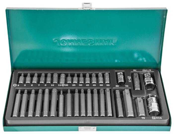 | Биты подробно : | биты 10 мм: HEX L-30 мм: 4 5 6 7 8 10 12, HEX L-75 мм: 4 5 6 7 8 10 12, TORX L-30 мм: Т20 Т25 Т30 Т40 Т45 Т50 Т55, TORX L-75 мм: Т20 Т25 Т30 Т40 Т45 Т50 Т55, биты 14мм: SPLINE L-50 мм: Т60 Т70, SPLINE L-75 мм: Т60 Т70, держатели бит: 3/8" DRx10мм 1/2" DRx10мм 1/2" DRx14мм |