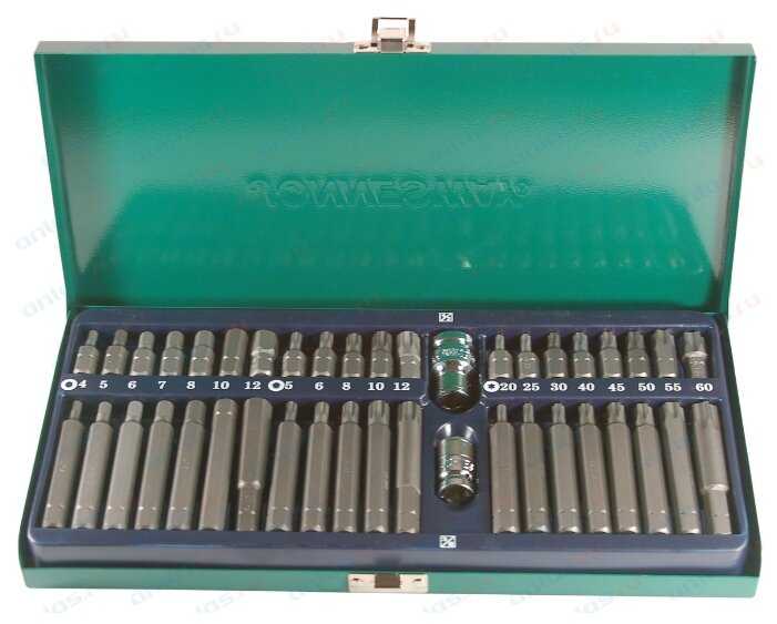 - + Качество отличное, подобраны возможные варианты тип бит - длинные. короткие; кейс металлический - крышка на защёлке, очень удобно; биты ровные от центрованные - литьё отличное
