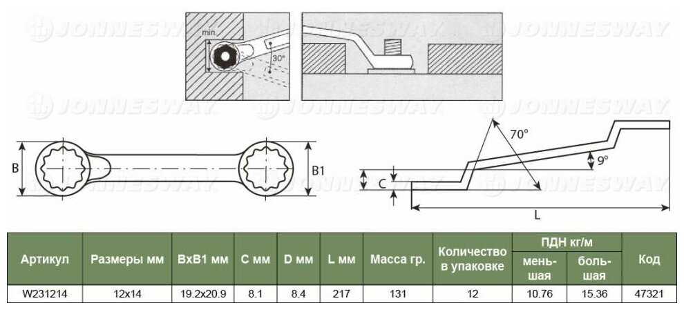 Характеристи JONNESWAY W231214, 12 мм х 14 мм