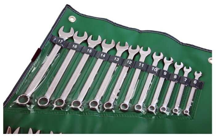 - + Довольно большой ассортимент для обычных комбинированных ключей.Если в отдельности по ключику покупать , в целом дороже выйдет. Привычная упаковка- портянка. Можно в гараже на стенку повесить, через отверстия ))). Ремонтировать технику пойдёт. Крепкие ключи, качественное хромовое покрытие.
