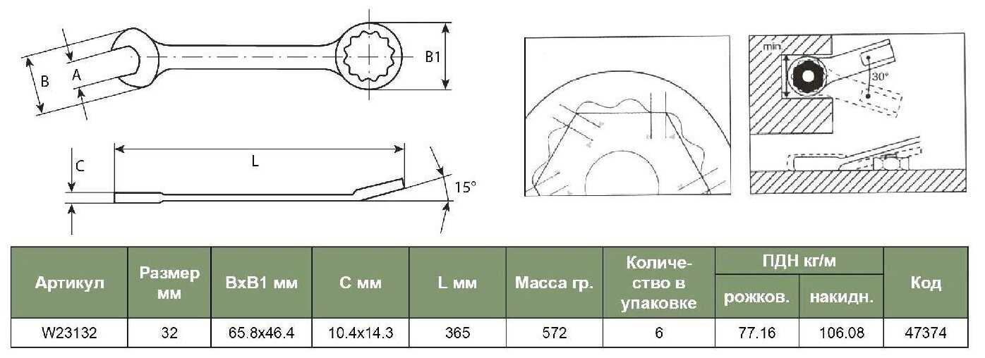 Дополнительная информация : | Ключ гаечный комбинированный, 32 мм Jonnesway |
