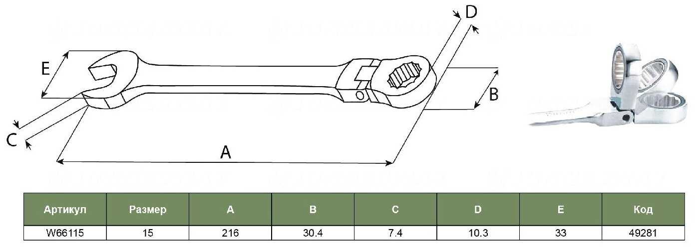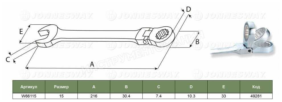 Характеристи JONNESWAY W66115, 15 мм