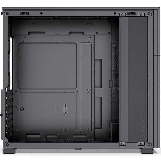 - 2 слота для 2.5" SSD на раме под стеклом и 1 слот с виброизоляцией за второй стенкой, универсальный отсек для 3.5" HDD/вентилятора.