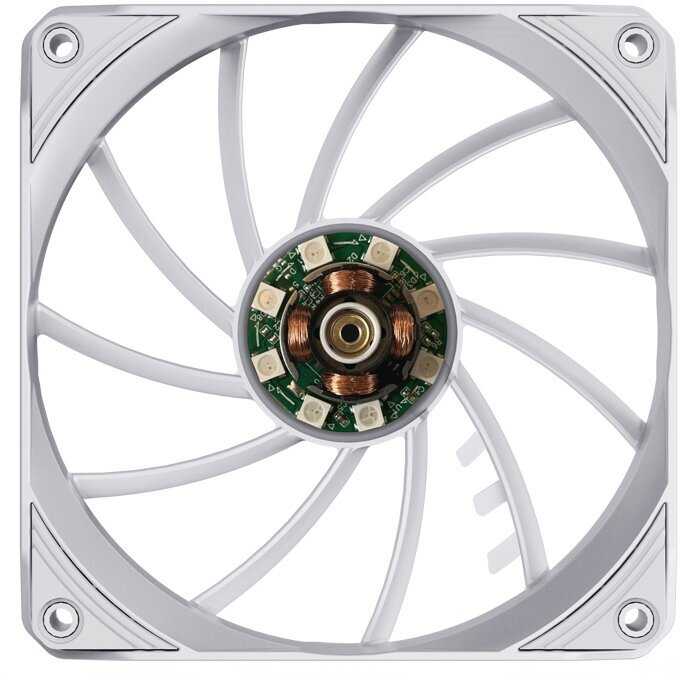 - Равномерная подсветка с возможностью изменения цвета через ПО материнки, вписывается в белые/яркие сборки.