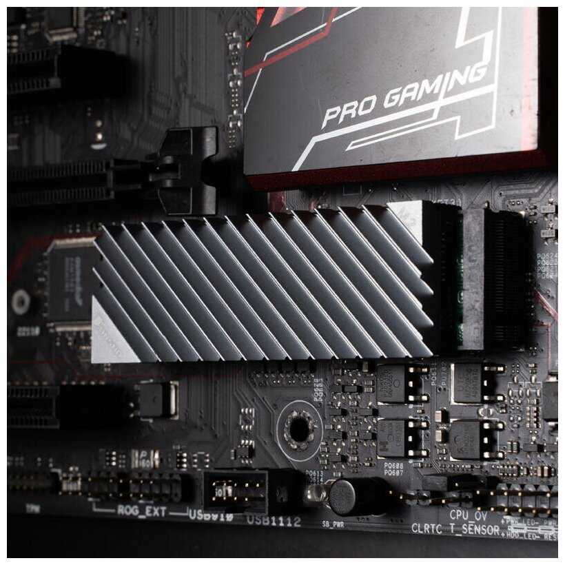Габариты радиатора (особенно с учетом термопрокладок) создают сложности в тесных сборках: он может упираться в соседние SSD, видеокарту или элементы материнской платы. Перед покупкой замерьте расстояние до ближайших компонентов. -