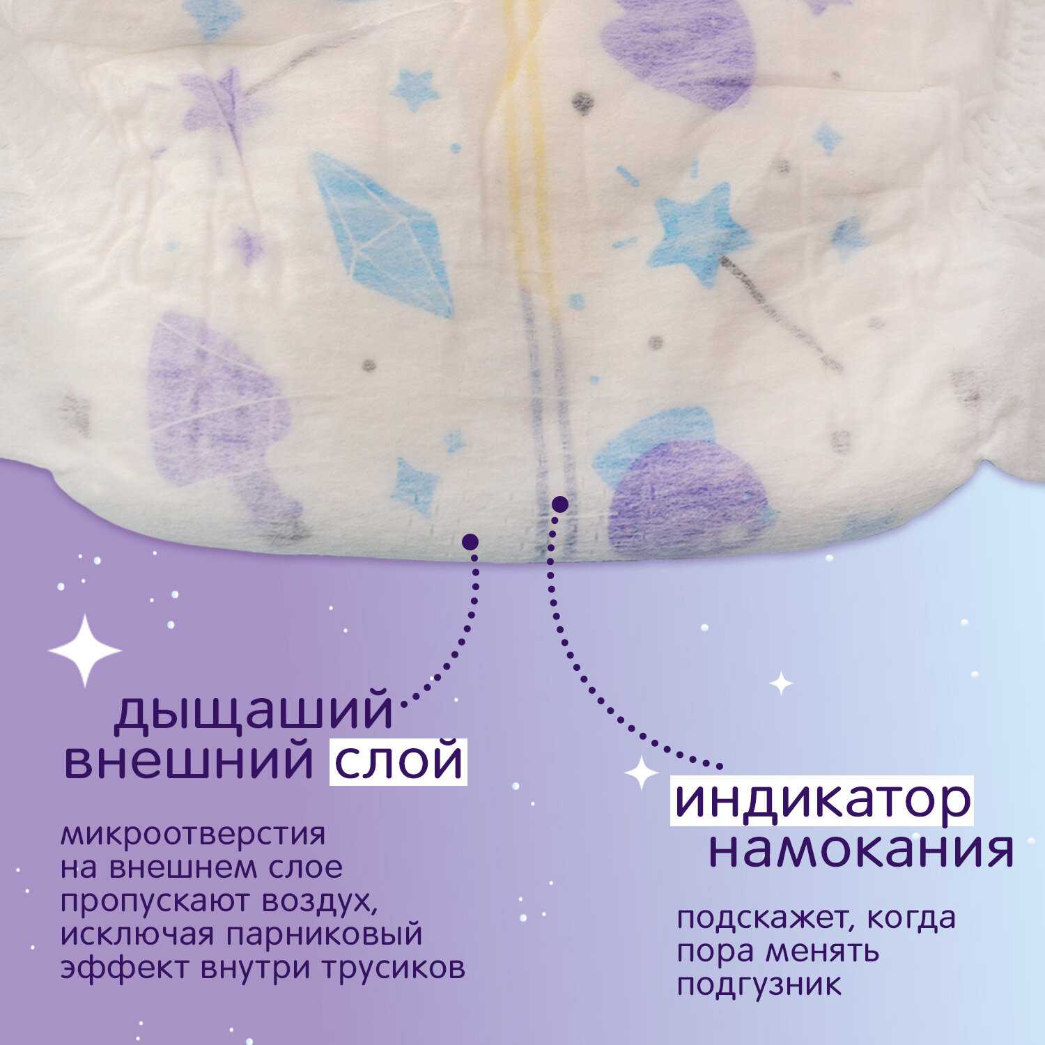 Беру обычно малышу трусики комфорт( 6 месяцев), но ночью любит спать на боку и соответсвенно моча скапливается сбоку и протекает, решила для ночи взять эти трусики. Упаковка просто класс, необычный принт и материал и сами трусишки оооочень мягкие и приятные. На 8000кг взяла размер л чтобы посвободне