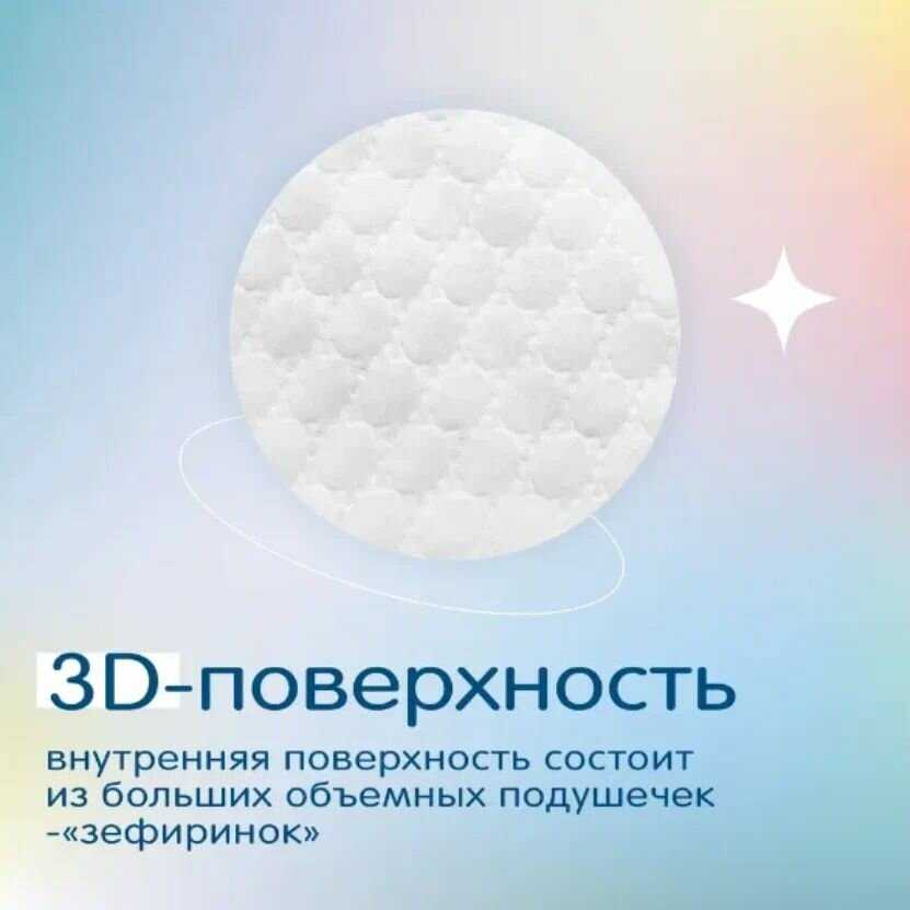 | Особенности : | боковые внутренние бортики, большая упаковка, индикатор наполнения, рельефная внутренняя поверхность, эластичные резинки вокруг ножек, эластичный пояс |