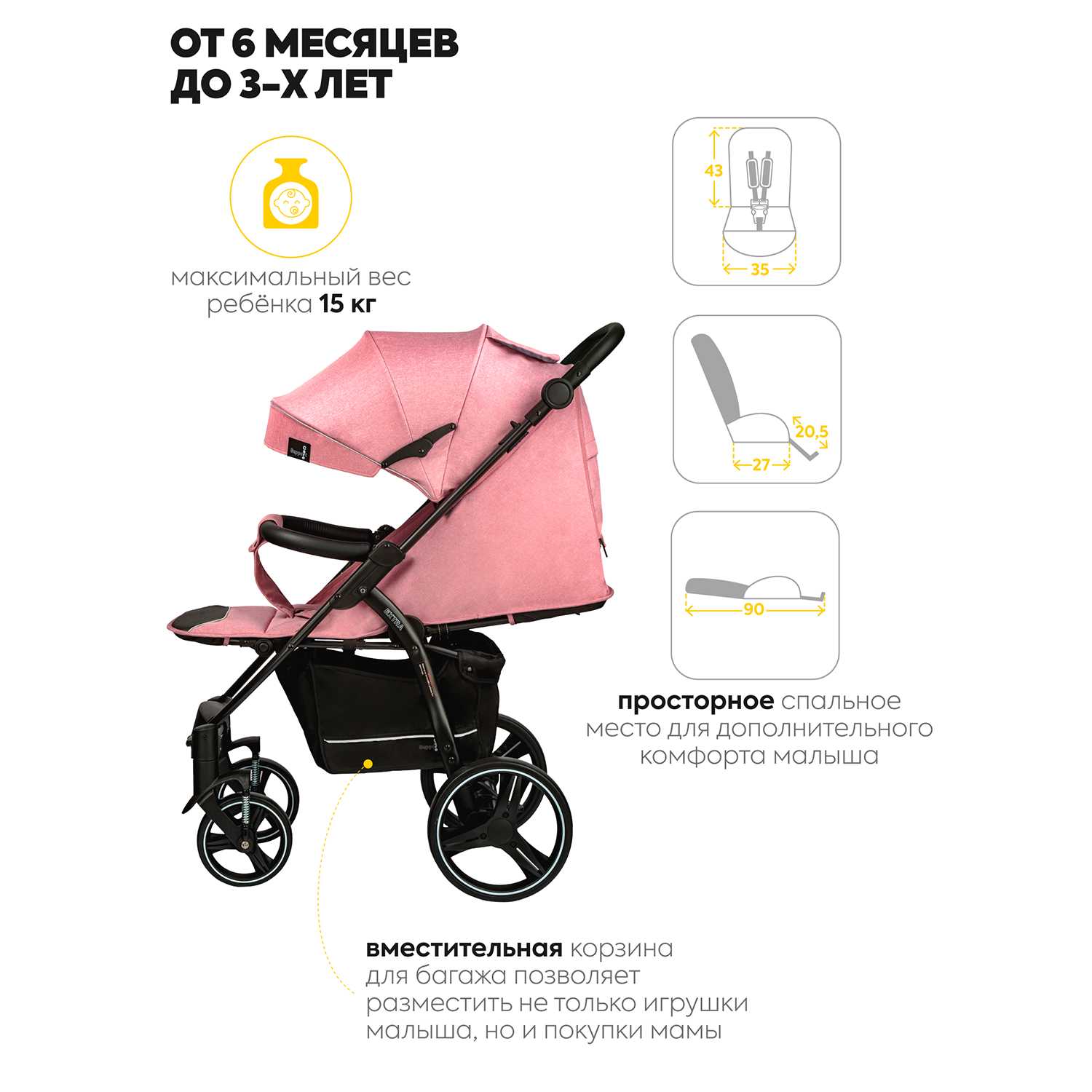 Не пишу обычно отзыв , но я долго колебалась с выбором коляски , пугали отзывы о том что она от нагрузки сломается, ребенок весит 11 кг и постоянно вожу в корзине по 15 л воды , выдерживает 🙏 , легко моется , удобное широкое сидение для ребенка.