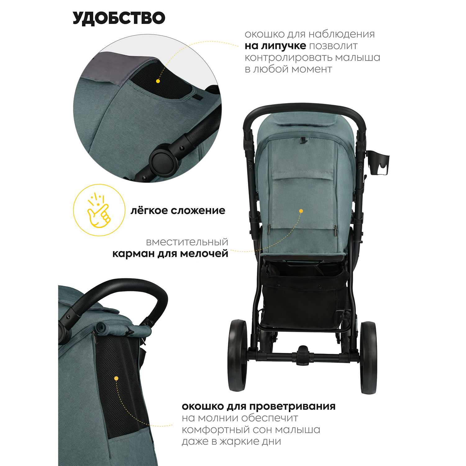 Коляска это просто идеал. Материал пушка, вытирается просто влажной салфеткой, ребенок фиксируется, очень удобное сидение для ребенка. Идеальный козырек, регулируемый. Большая корзина, тормоз. Просто все гениально. Управление очень удобное. А еще огонь, что ручка регулируется. К коляске претензий нет вообще, она просто пушка за эту стоимость. К сожалению либо я не разобралась, либо что не так- у меня прокручивается подстаканник и дважды мой кофа выливался)) и не было в комплекте маскитной сетки, тоже было бы не плохо. Может продавец захочет отправить отдельно)) за это оценку не снижаю, потому что даже если учесть эти нюансы коляска стоит намного дороже! Спасибо большое, она супер