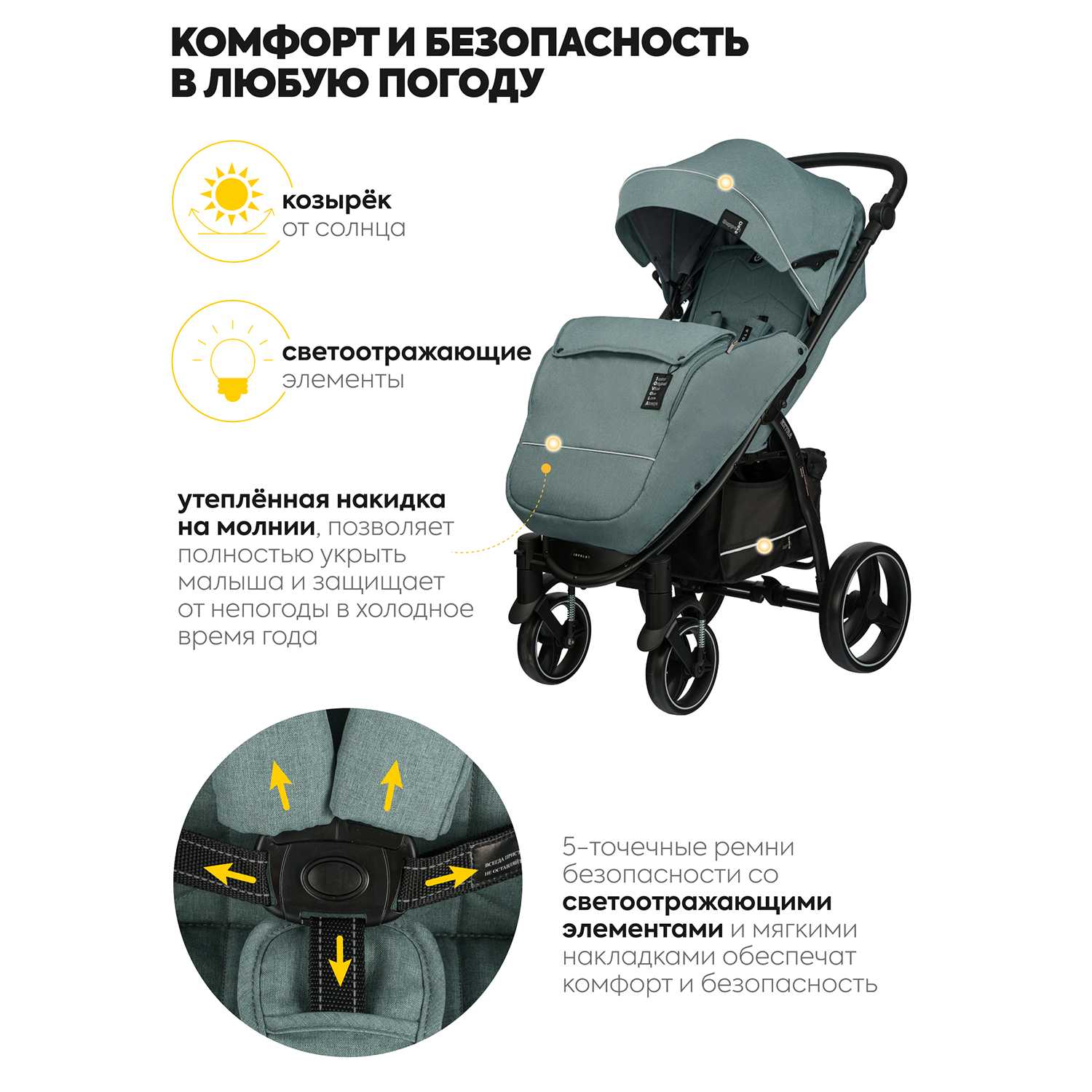 | Дополнительные опции : | светоотражающие детали, устойчивое положение в собранном виде |