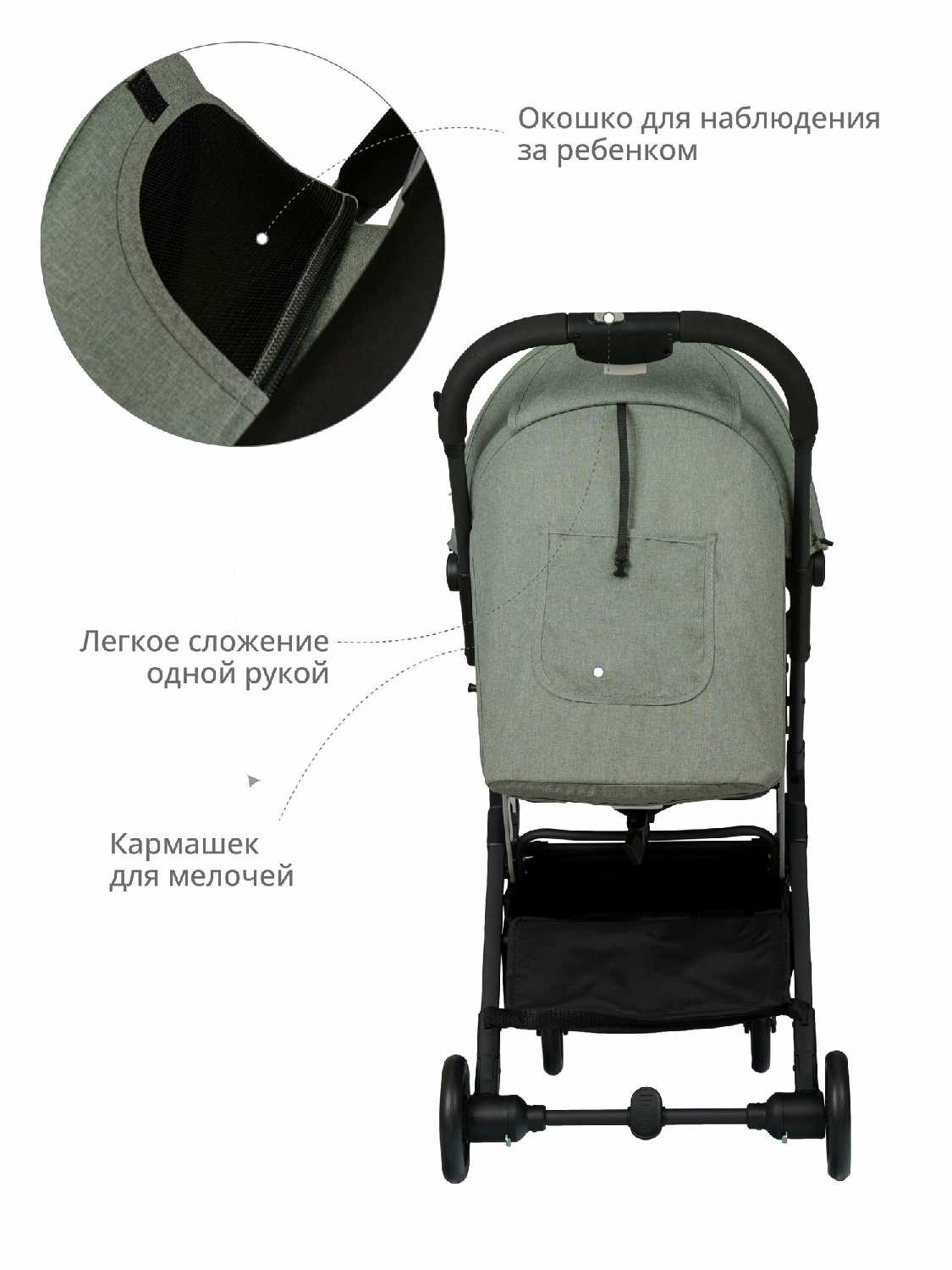 - Конструкция ручки и рамы позволяет легко установить дополнительные аксессуары: подстаканник, сумку для мелочей, что повышает удобство для родителя.