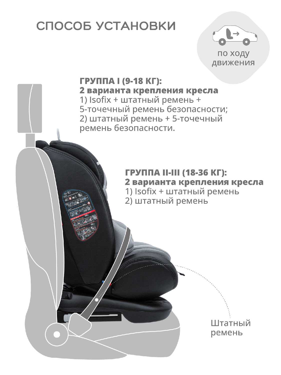 | Установка : | спиной или лицом вперед |