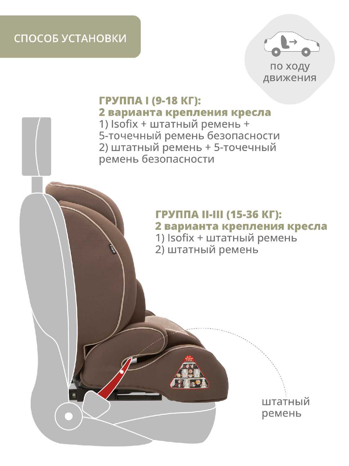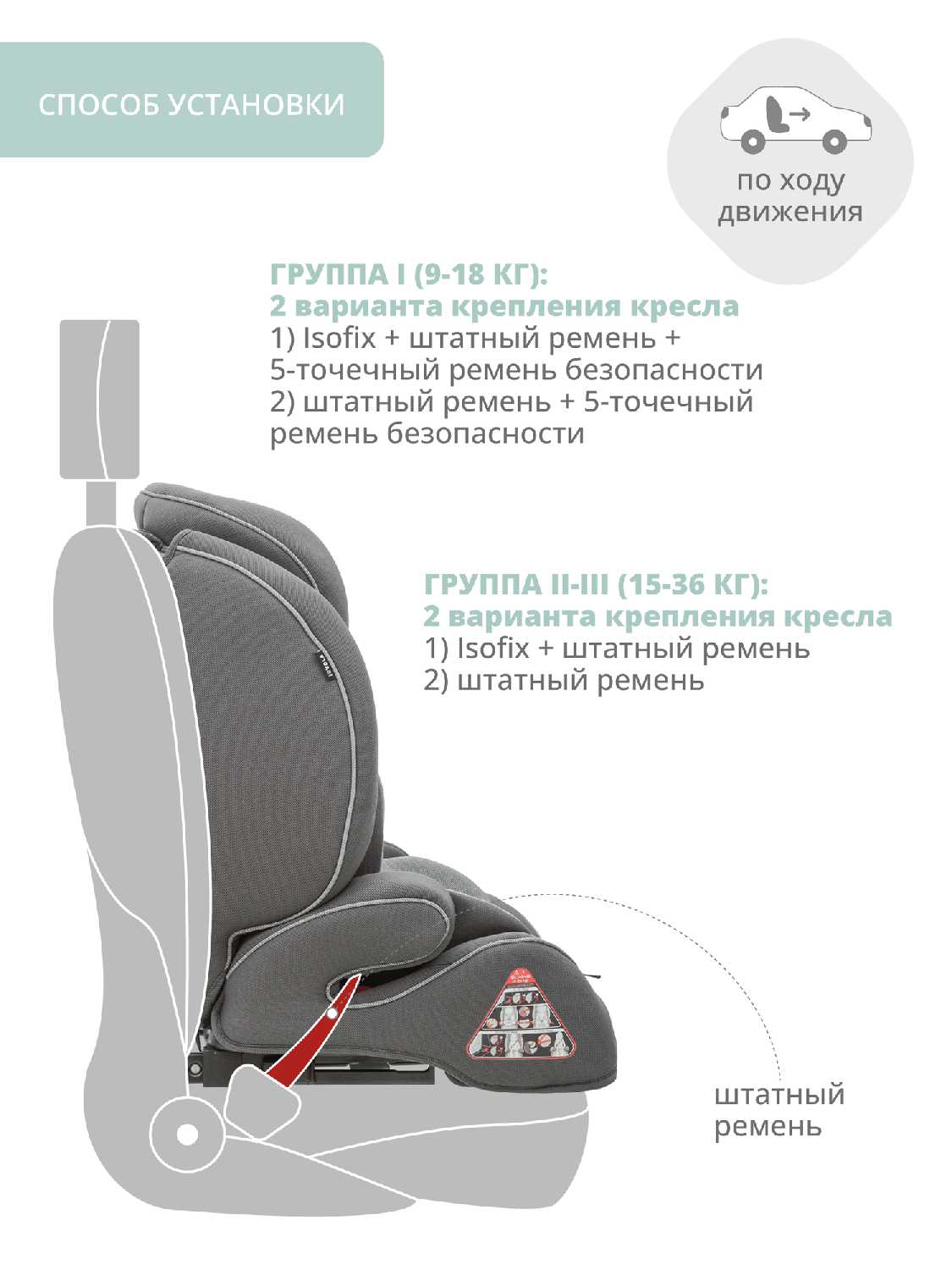 - крепление: автомобильные ремни