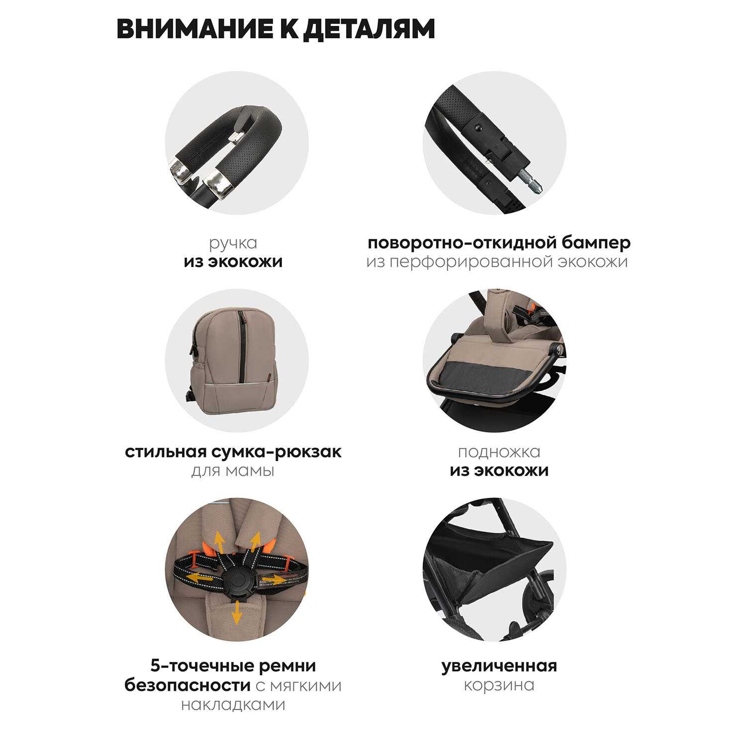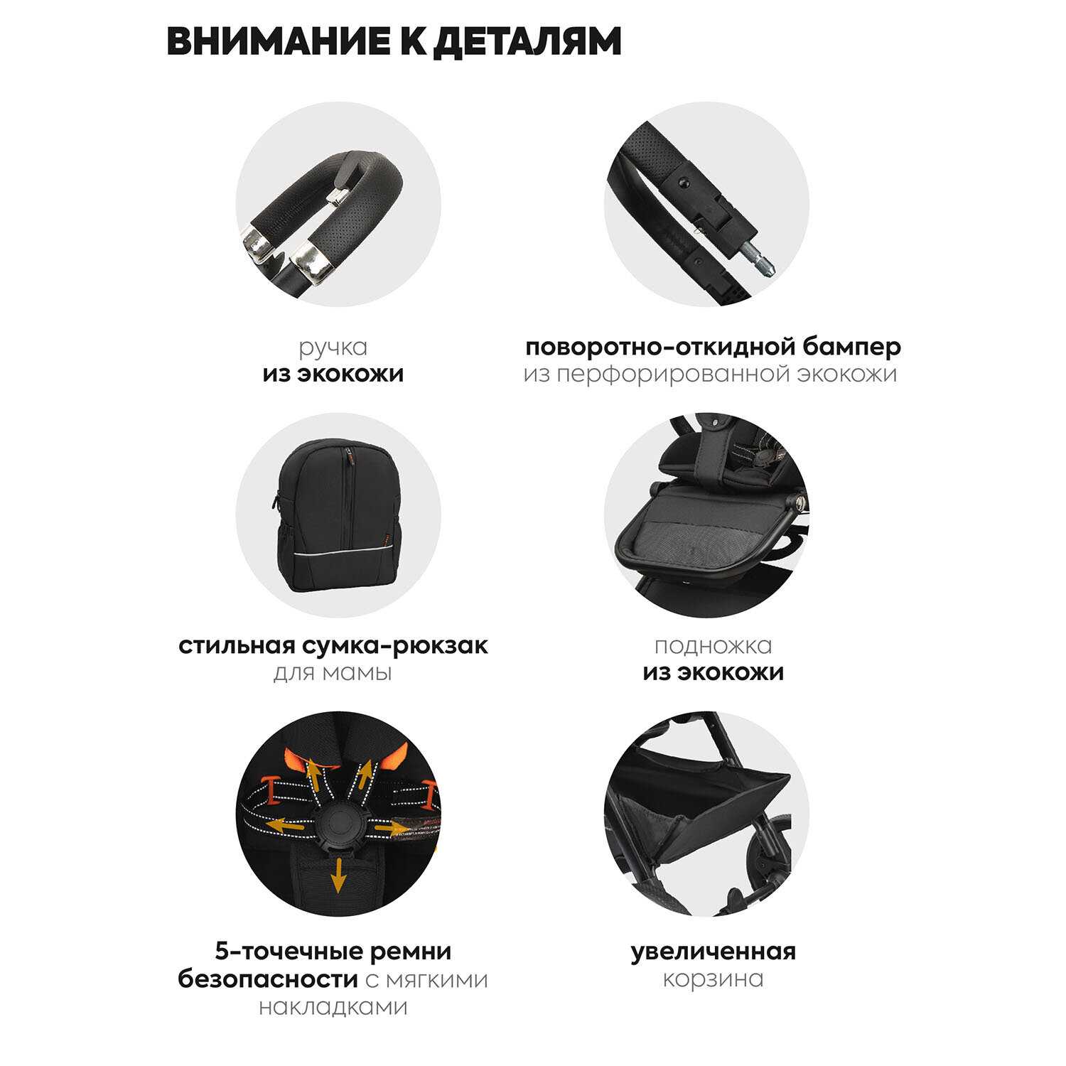 | Особенности прогулочного блока : | бампер, горизонтальное положение спинки, мягкие накладки на ремни, регулировка высоты подножки, регулировка наклона спинки, ремни безопасности, смотровое окно |