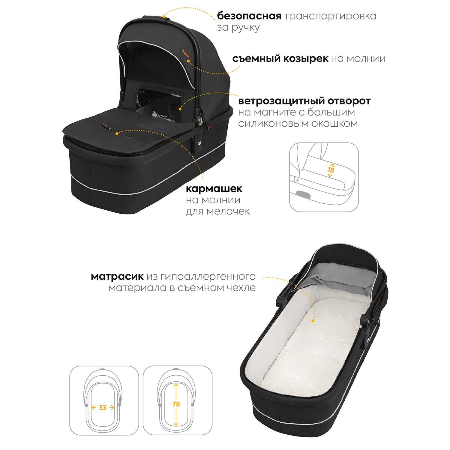 | Комплектация : | антимоскитная сетка, бампер, капюшон, матрас, накидка на ноги, подстаканник, рюкзак, солнцезащитный козырек |