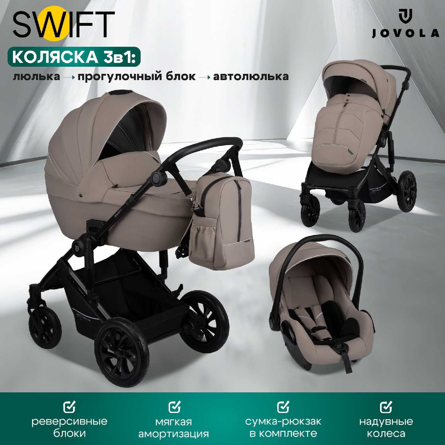 - Модульная система 3-в-1 (люлька/прогулочный блок/автокресло) собирается интуитивно за 10-15 минут без инструментов.