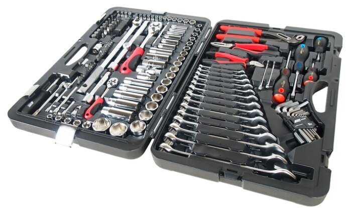 - + Хороший, крепкий, рабочий набор автомеханика. Перекрывает большинство задач и марок. Губцевый инструмент - выше всяческих похвал.