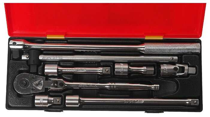 | Дополнительная информация : | Артикулы JTC-3613-6: удлинители 1/2": 2", 3", 5", 10" - 4 шт. JTC-3721: переходник карданный 1/2" - 1 шт. JTC-3617: 1/2" вороток с шарниром 15" - 1 шт. JTC-3718: 1/2" вороток с плавающей головкой 12" - 1 шт. JTC-3014: трещотка на шарнире с фиксатором 1/2" - 1 шт. Квадрат присоединения 1/2". |