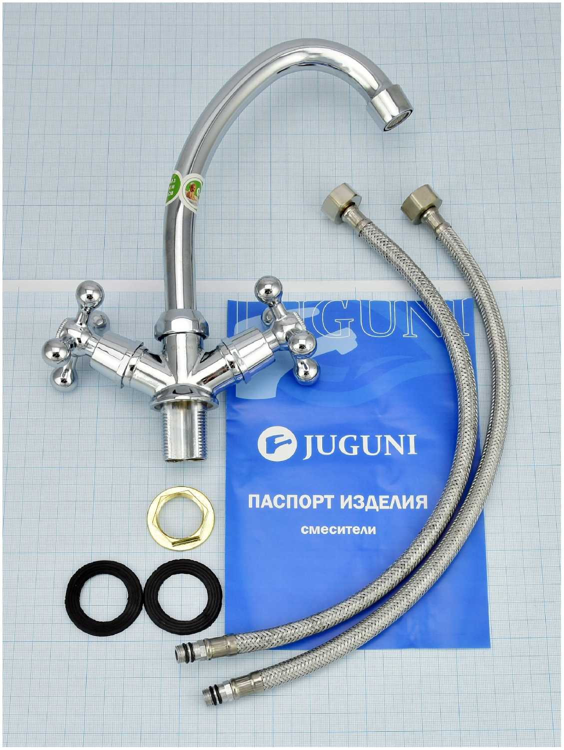 Отзывы о Смеситель для мойки двуручный Juguni с гибкой подводкой, крепление-гайка, 0402.657