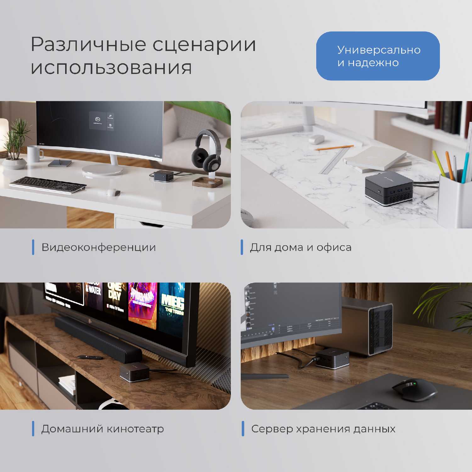 Мини-ПК тянет несколько виртуалок как сервер виртуализации, заменяя старые ПК и ноутбуки. Работает как медиа-сервер без вопросов, хранилище документов. Греется умеренно под нагрузкой. Компактность позволяет ставить "и забыть". -