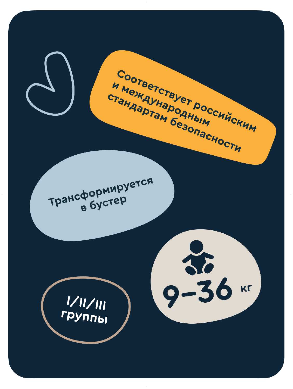 - Возможность трансформации в бустер путем демонтажа внутренних ремней для детей старшего возраста.