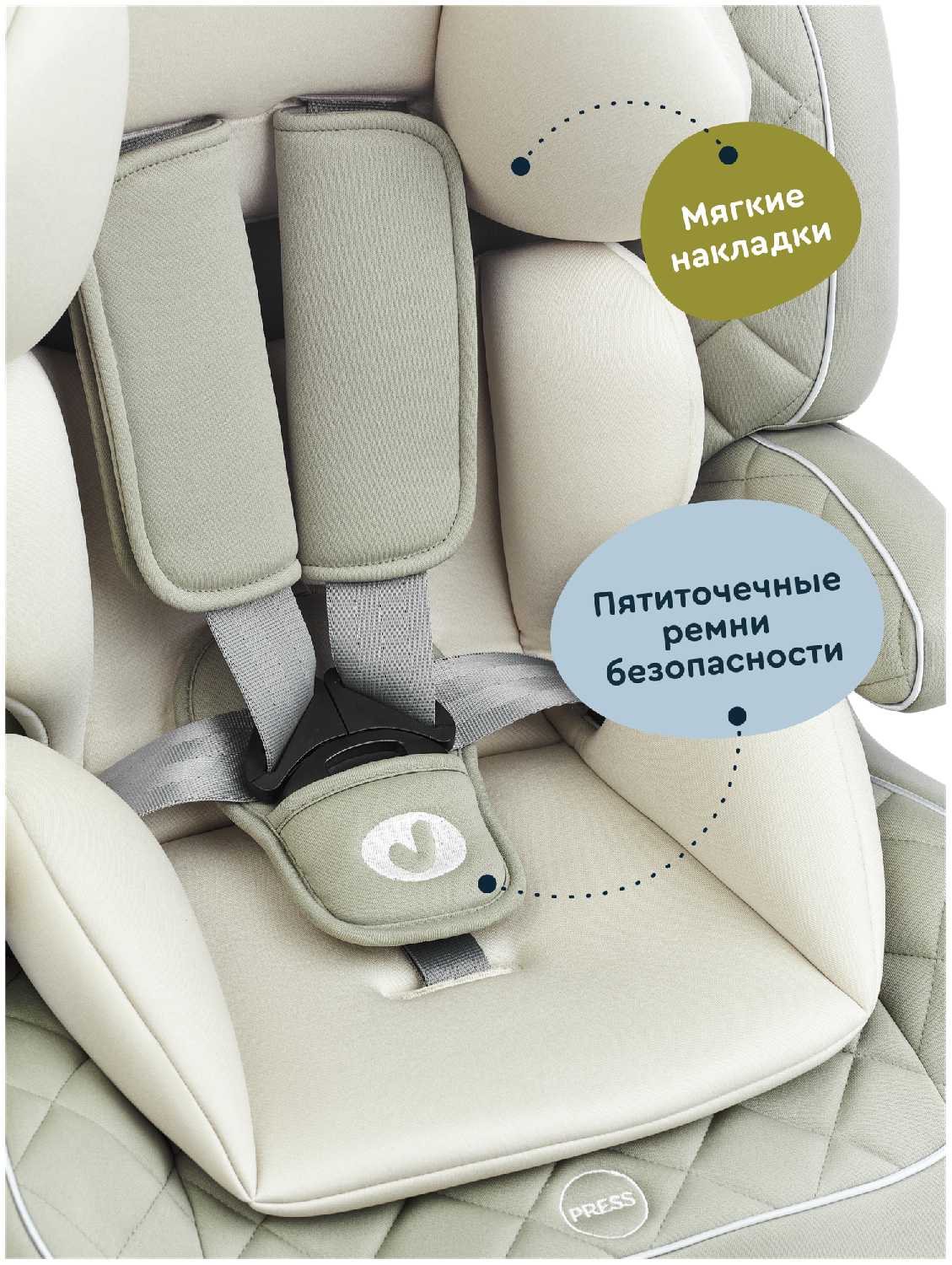 - Система крепления к сиденью автомобиля обеспечивает жесткую сцепку, исключая смещение при резких маневрах.