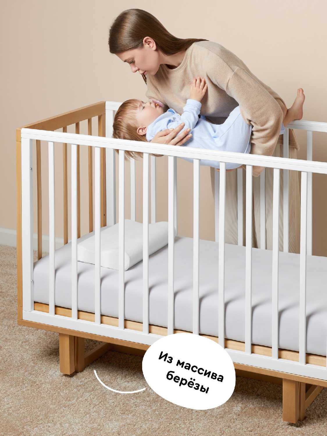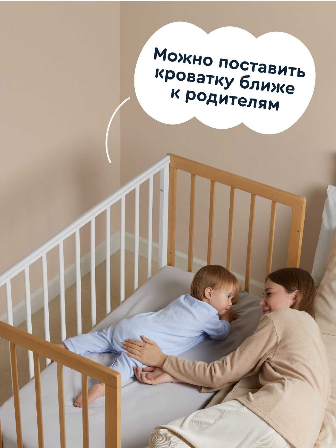 Подходит семьям, ценящим минималистичный дизайн и функцию маятника. Оптимальна для просторных комнат, где высокие бортики не критичны, или родителей среднего/высокого роста. Благодаря сменным конфигурациям прослужит от рождения до 3-4 лет. Требует терпения при сборке и проверки качества деталей.