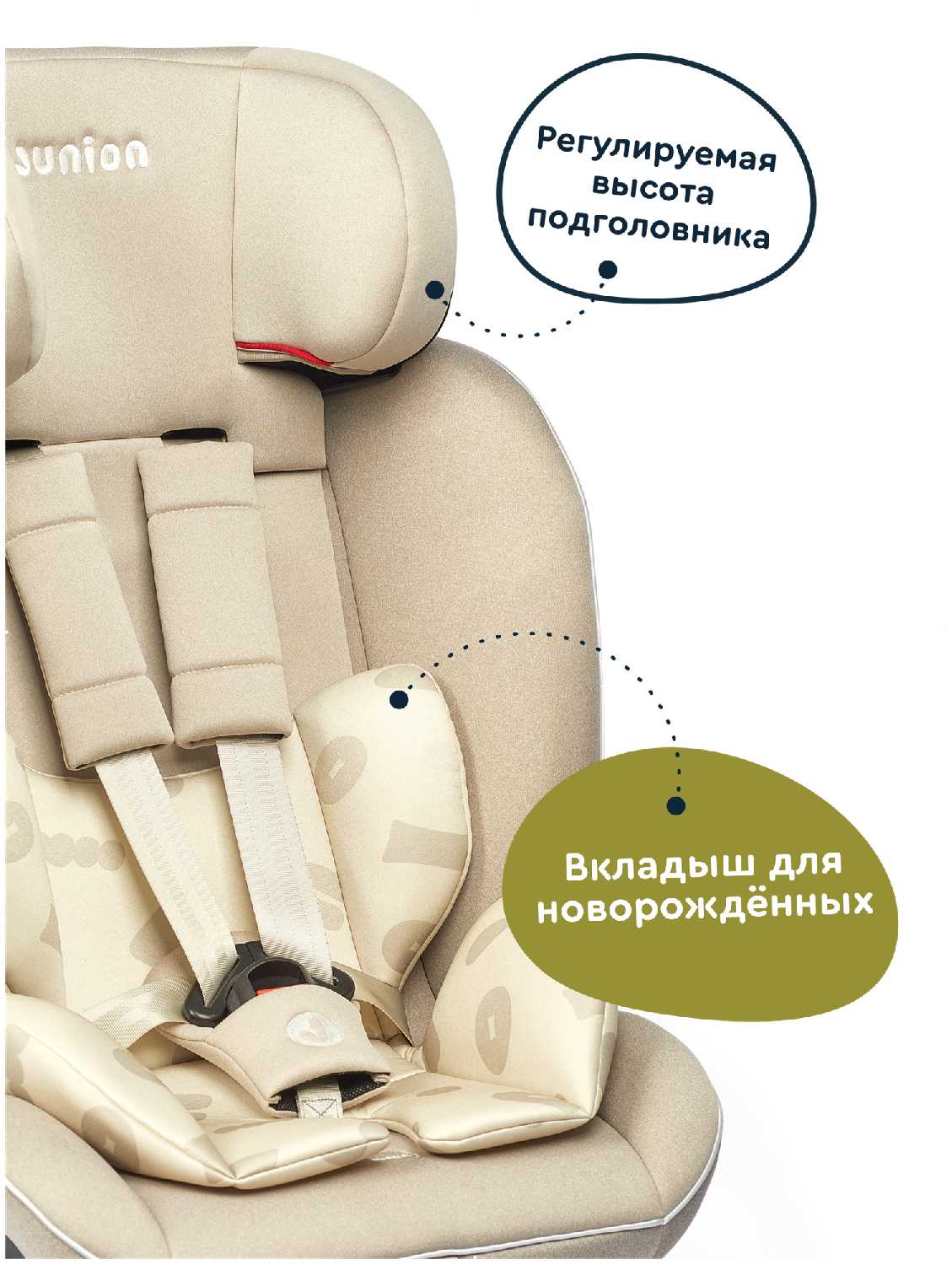 - Регулировка подголовника по высоте для роста ребенка: