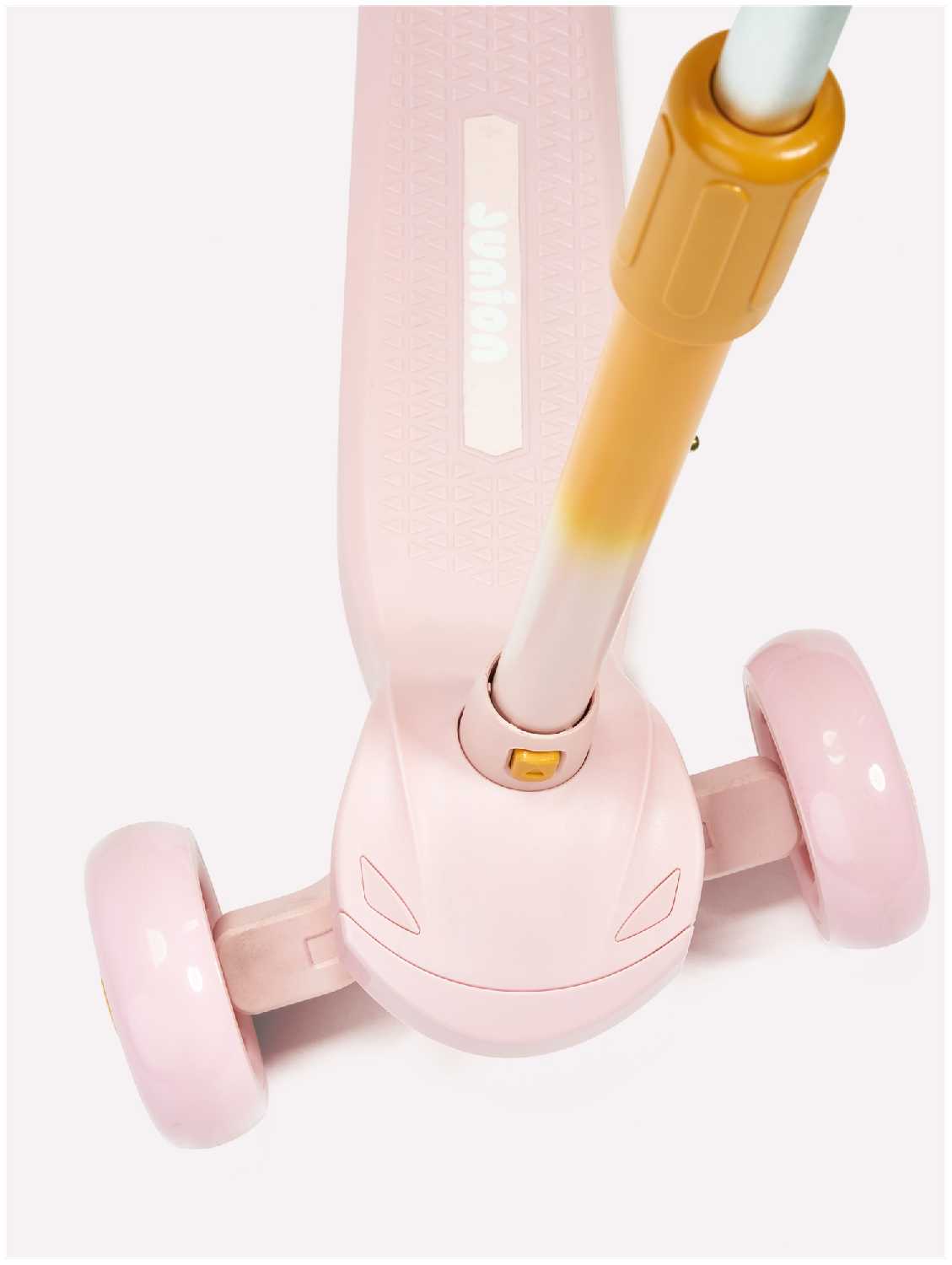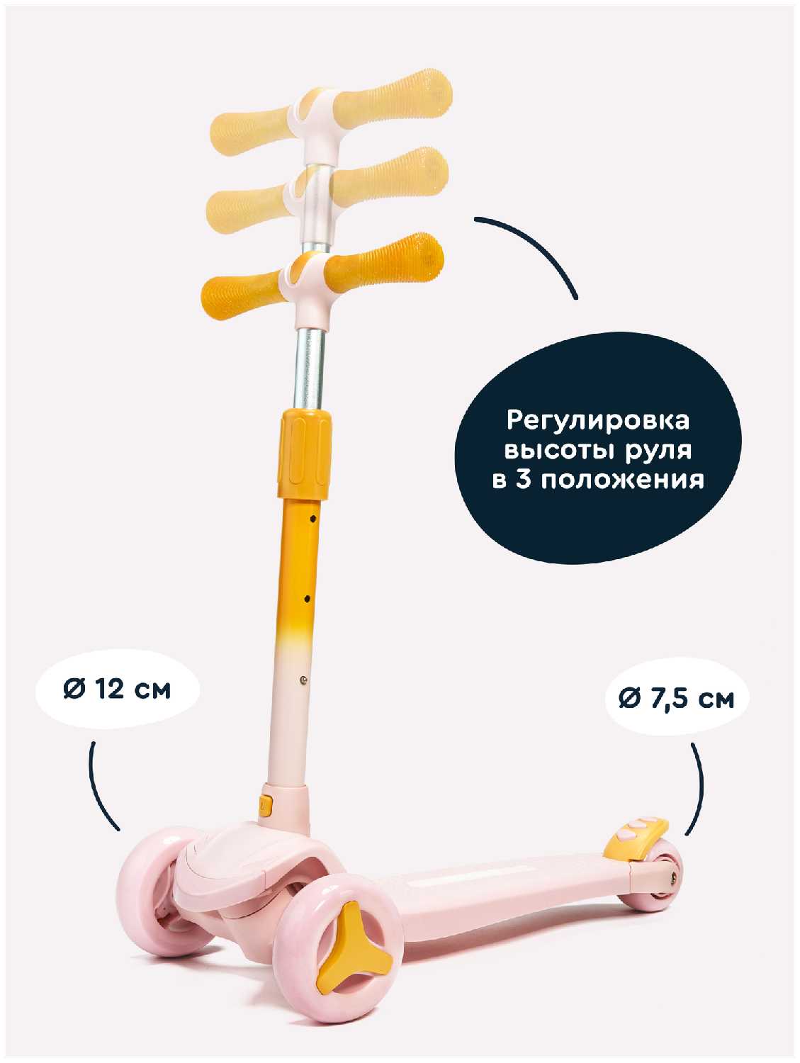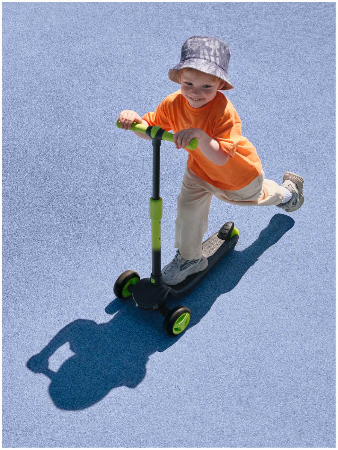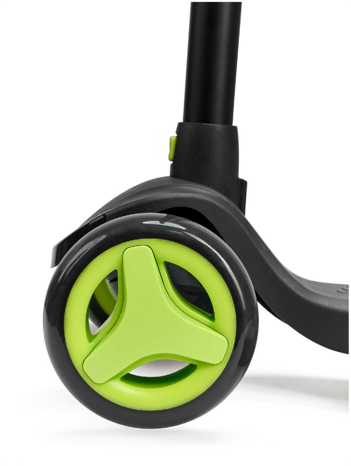 - + Колеса классные, для малыша самое то, за счет материала, можно и дома по ламинату учиться, не шумно и не царапают. Руль удобный, ручки прорезиненные, поворот за счёт наклона весом и давления на руль вправо влево, резко и круто не повернуть, что плюс для маленьких, если наскочишь на камень, руль сам стабилизируется и выровняется.