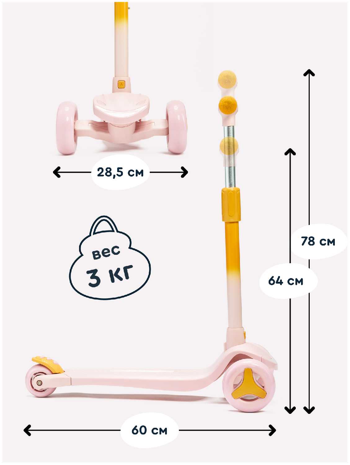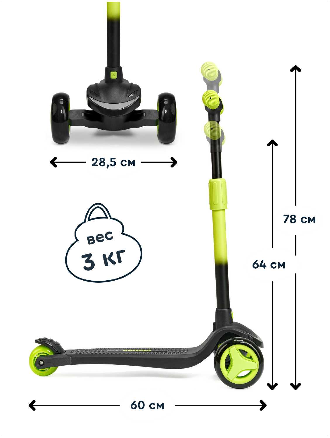 - + Стильный, качественный, светоотражающие наклейки в комплекте. Можно удобно регулировать высоту руля и разбирать самокат при необходимости