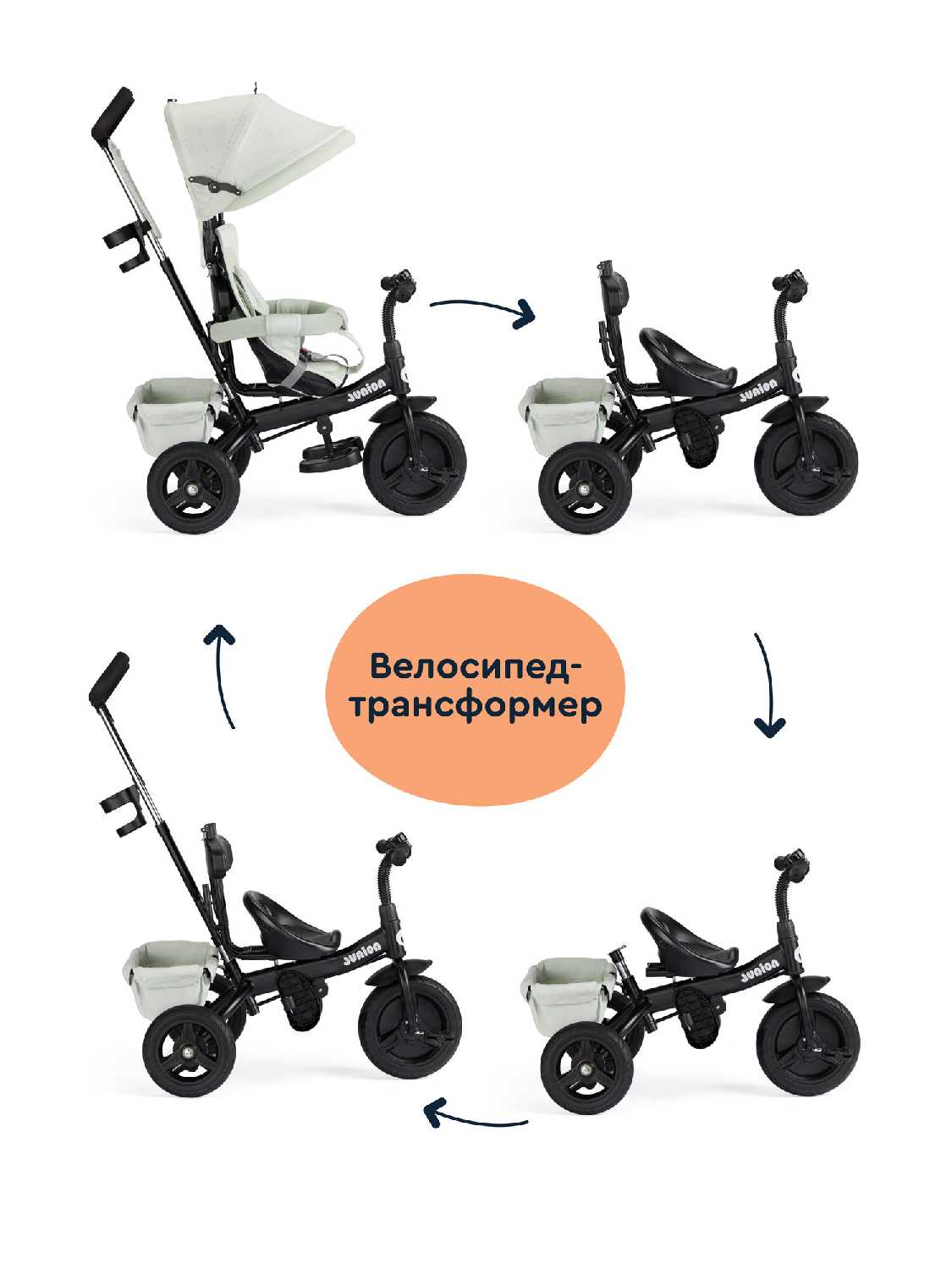 | Дополнительная информация : | блокировка педалей, съемная и регулируемая родительская ручка, большая корзина для хранения |