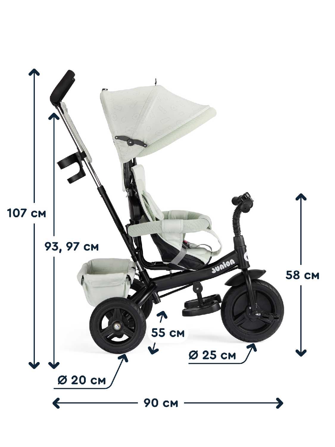 | Дополнительная информация : | блокировка педалей, съемная и регулируемая родительская ручка, большая корзина для хранения |