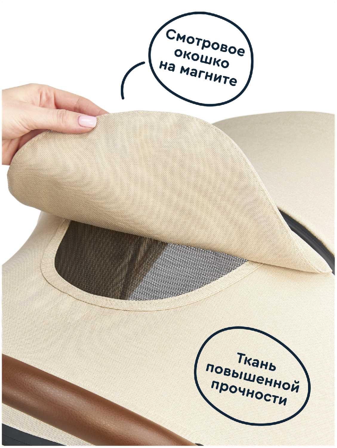 Материал коляски отличный, отстирывается легко щеткой и губкой, но на будущее светлое больше брать не буду 😀 капюшон плотный и не промокаемый, в случае дождя без дождевика спасает