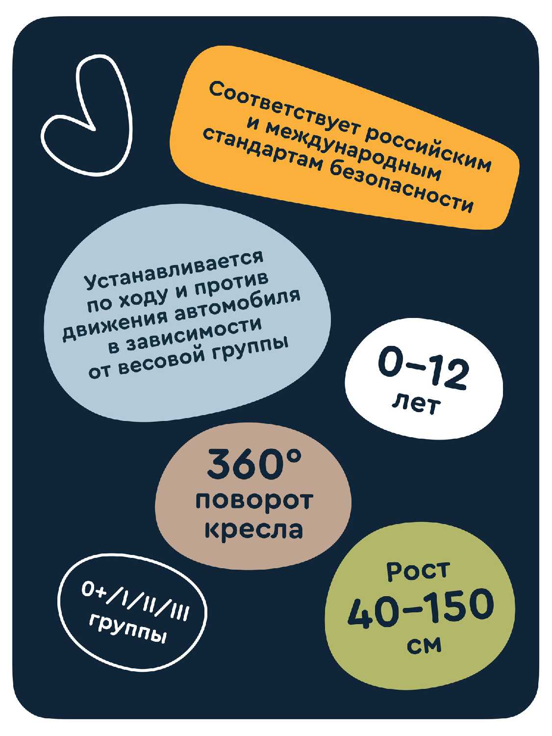 | Группа : | 0/1 (до 18 кг), рост от 40 до 150 см |