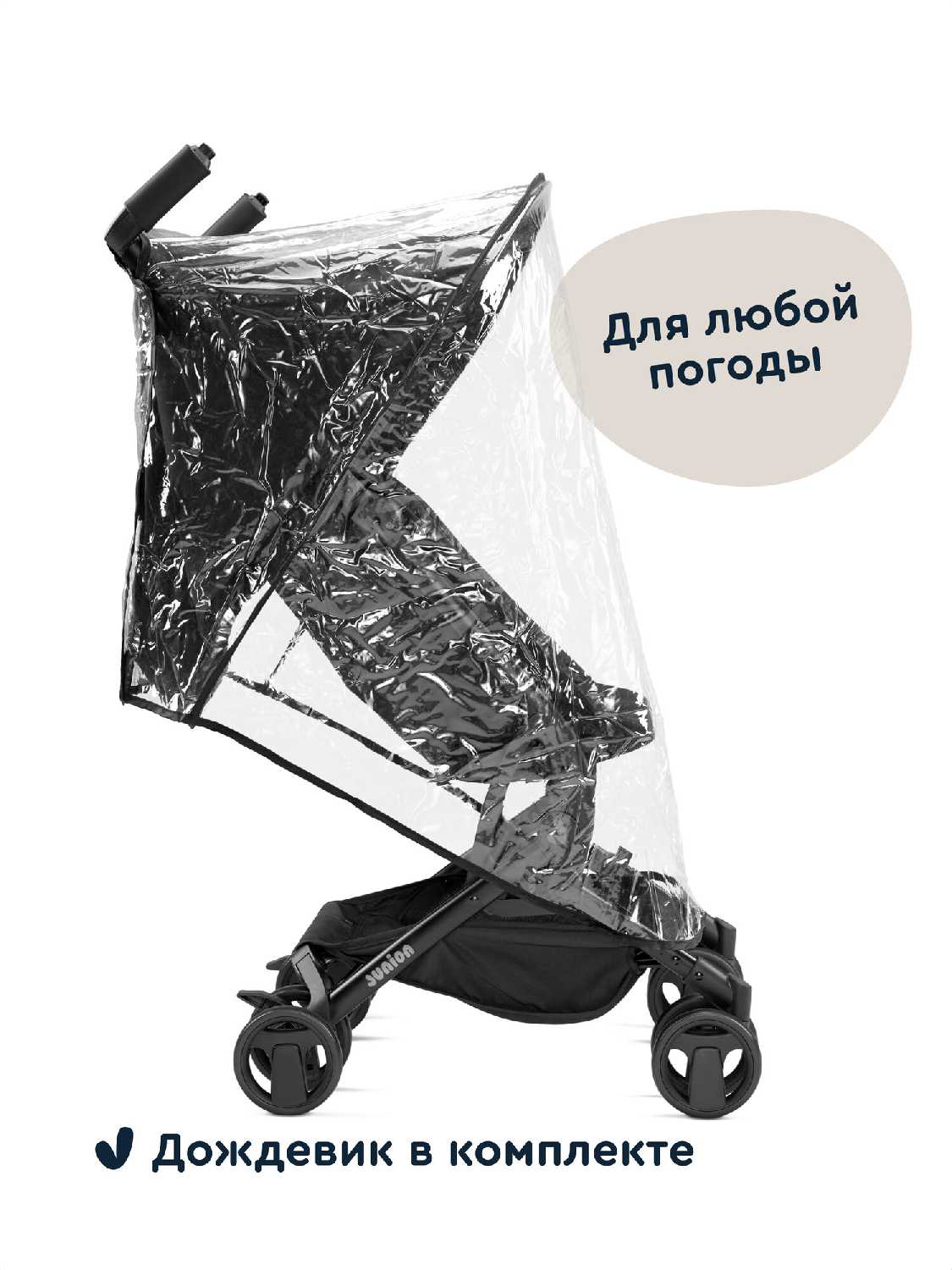 Капюшон недостаточно эффективен против солнца: он мал по размеру, слабо прикрывает лицо и бока. Для дождя в комплекте идёт плотный дождевик, который пользователи хвалят за полное укрытие коляски. Однако некоторые отмечают отсутствие дождевика в поставке, хотя он заявлен. Для солнечной погоды советуют докупать дополнительный козырёк. -